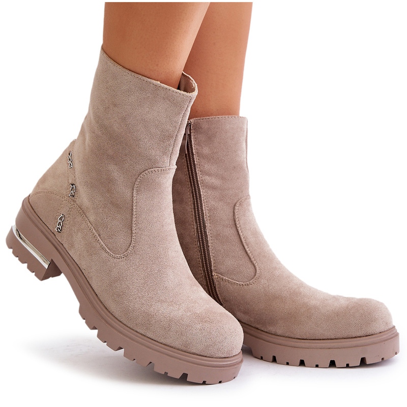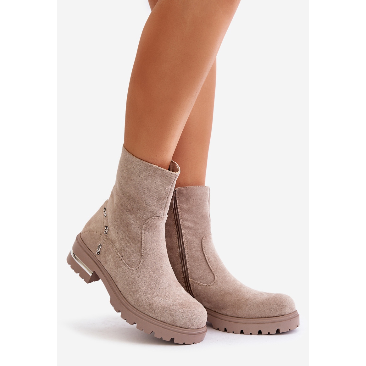 Les bottes isolées pour femmes en suède écologique avec fermeture éclair, beige, sont un choix parfait pour toute femme à la mode qui valorise le confort et le style. Fabriquées en éco-daim de haute qualité, ces bottines élégantes séduisent par une finition agréable au toucher qui les rend parfaites pour les journées les plus froides.