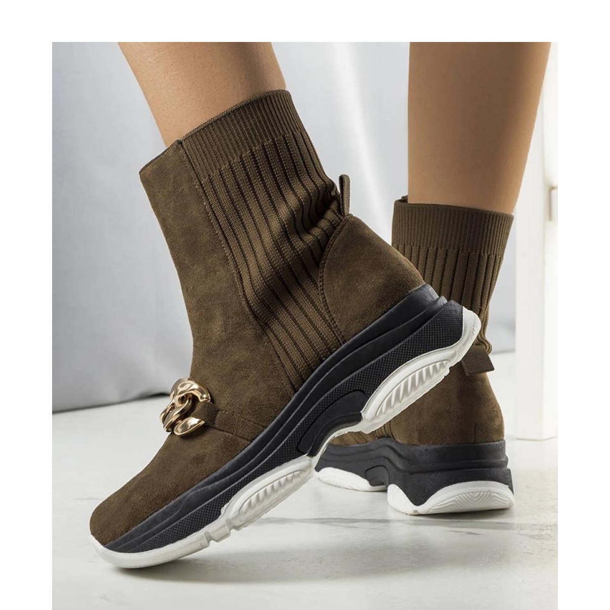 Les bottes isolées vertes avec une chaîne Ulster sont le choix parfait pour les journées plus froides d'automne et d'hiver. Leur tige est en cuir suédé écologique de haute qualité, avec des inserts supplémentaires en matériau élastique pour un meilleur ajustement et un meilleur confort. De plus, l'intérieur des chaussures est fini avec un matériau chaud imitant la fourrure, qui offre une protection supplémentaire contre le froid. Les bottes ont une fermeture à enfiler, ce qui les rend faciles et confortables à enfiler. Le modèle Ulster est non seulement pratique, mais aussi à la mode : il complétera parfaitement n'importe quel style automne-hiver. La semelle des chaussures est en caoutchouc noir durable. La numérotation est standard, il est donc conseillé de choisir votre taille habituelle. Les chaussures parfaites pour toutes les occasions hivernales !