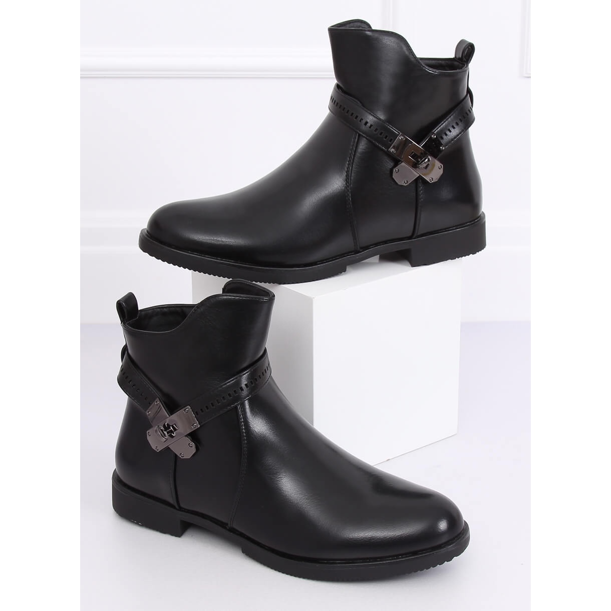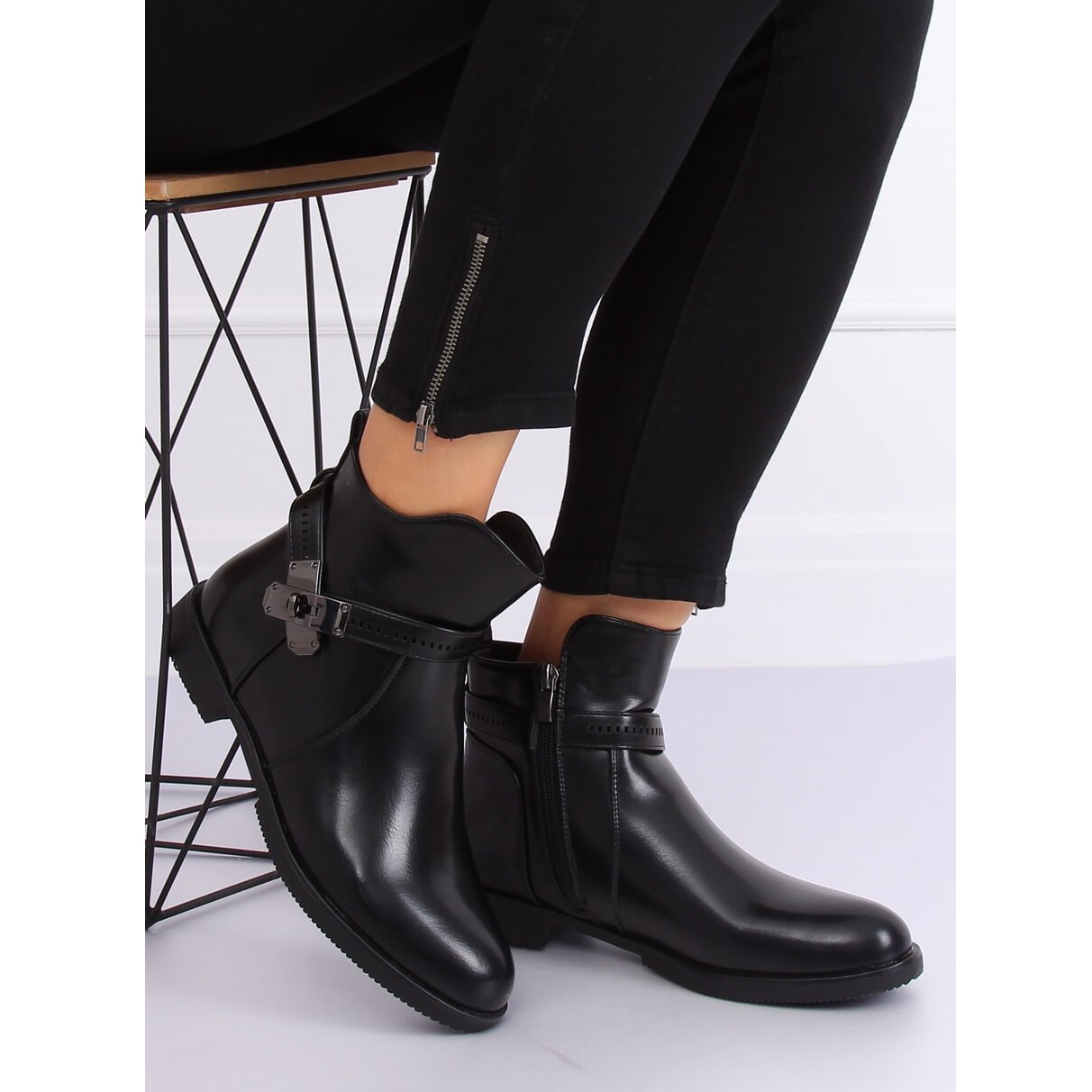 La tige des bottes est ornée d'une décoration accrocheuse sur le côté, leur ajoutant du caractère et de l'unicité. La fermeture éclair pratique permet un enfilage et un retrait rapides, ce qui est extrêmement important au quotidien. Fabriquées en cuir écologique brillant de haute qualité, ces bottines sont non seulement à la mode, mais également respectueuses de l'environnement.