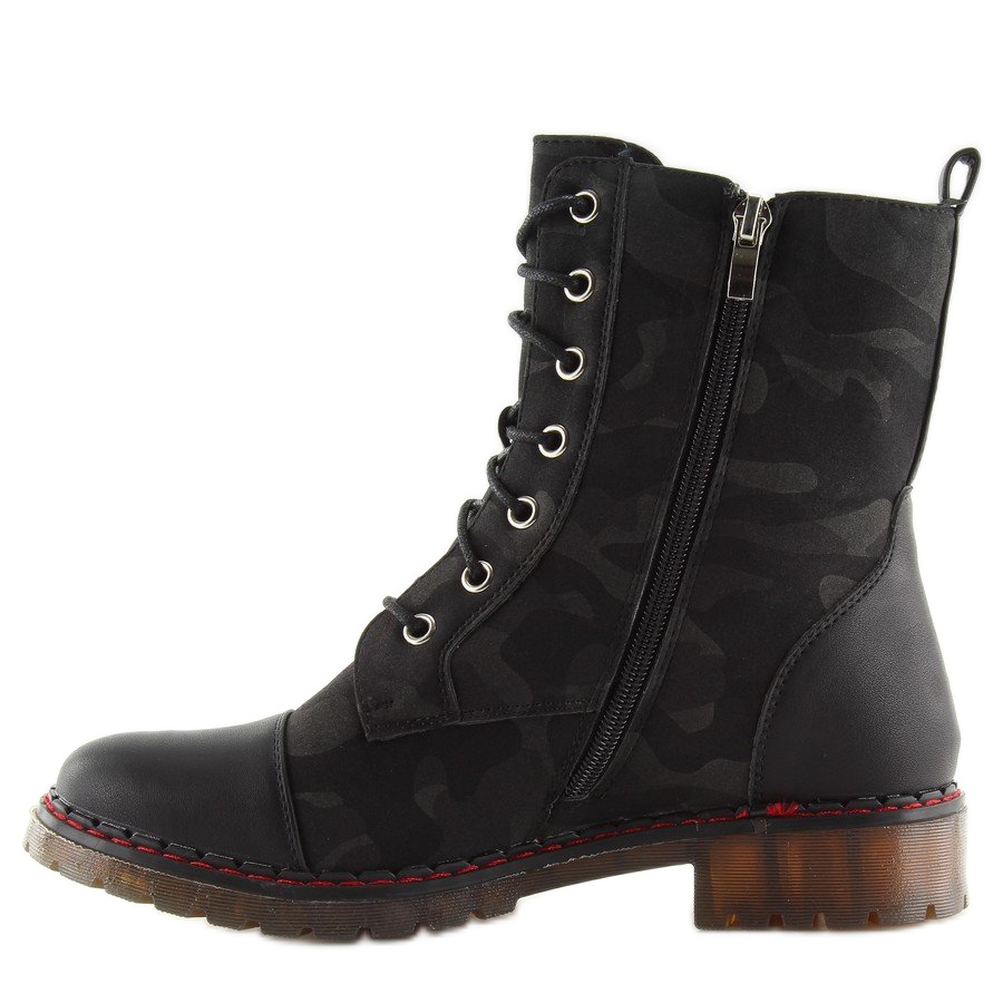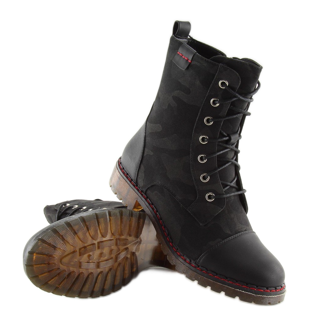 Nous vous invitons à découvrir les bottes à lacets uniques A-26 Black, qui allient design moderne et style militaire. Ces chaussures originales pour femmes sont fabriquées en cuir et nubuck écologiques de haute qualité, ce qui garantit non seulement un aspect esthétique, mais aussi un confort de port. Le motif camouflage leur donne du caractère et les distingue des autres modèles du marché.