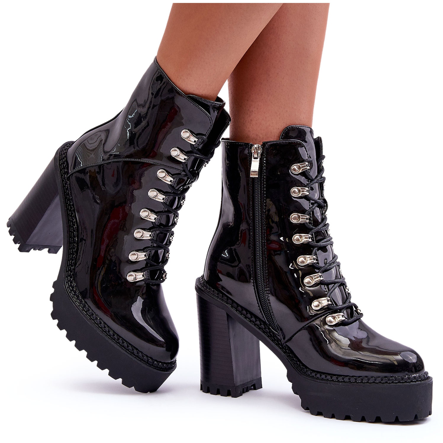 Détails: Bottines Laquées à Talons Chunky Noir Ikeshia le noir