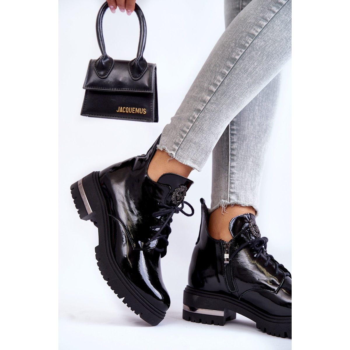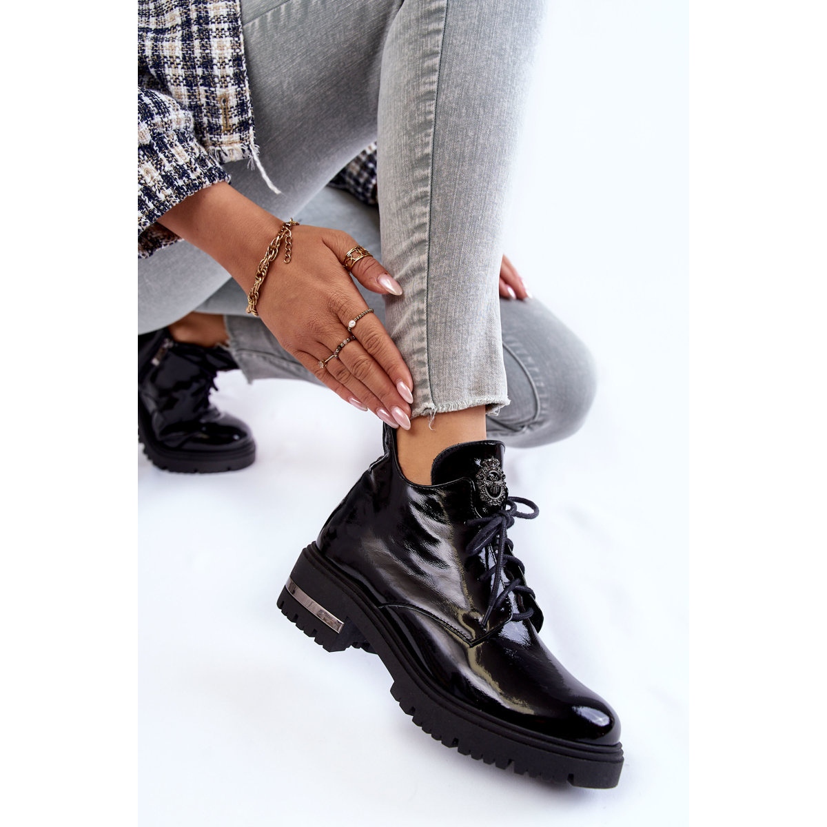 Détails: Bottines Laquées Sur Talon Plat Pour Femme Noir Charline le noir