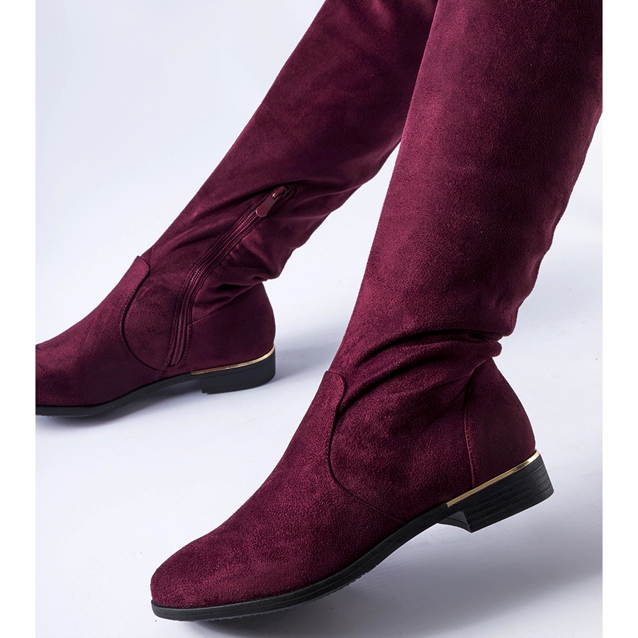 Détails: Bottines longues Elwira en éco-daim chaudes bordeaux rouge