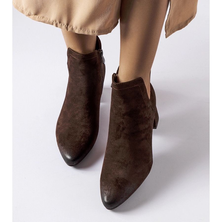 Classic et à la mode en même temps - ces bottes brunes de Vinceza (modèle 58141) sont un complément parfait aux stylisations d'automne et d'hiver. Jusqu'à la cheville, avec un nez clairement pointu et un poteau confortable et bas (6 cm), ajoutez la légèreté et l'élégance à la figure, et en même temps assurer la stabilité pendant le port plus long.