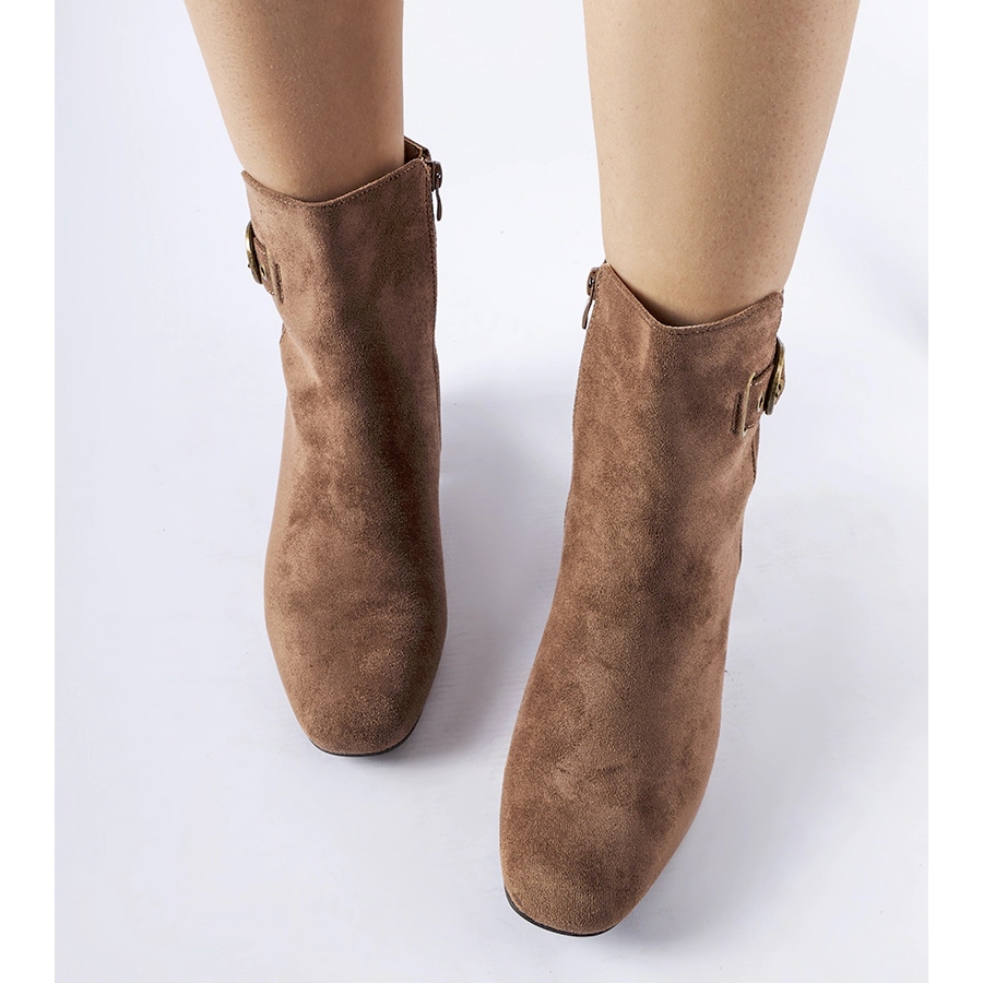 Détails: Bottines marron à talons bas en éco-daim par Nemaha brun