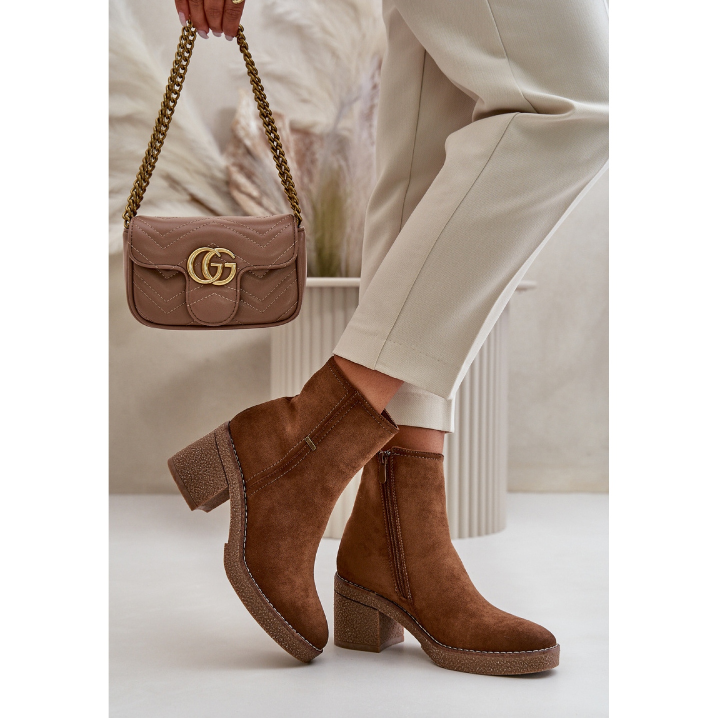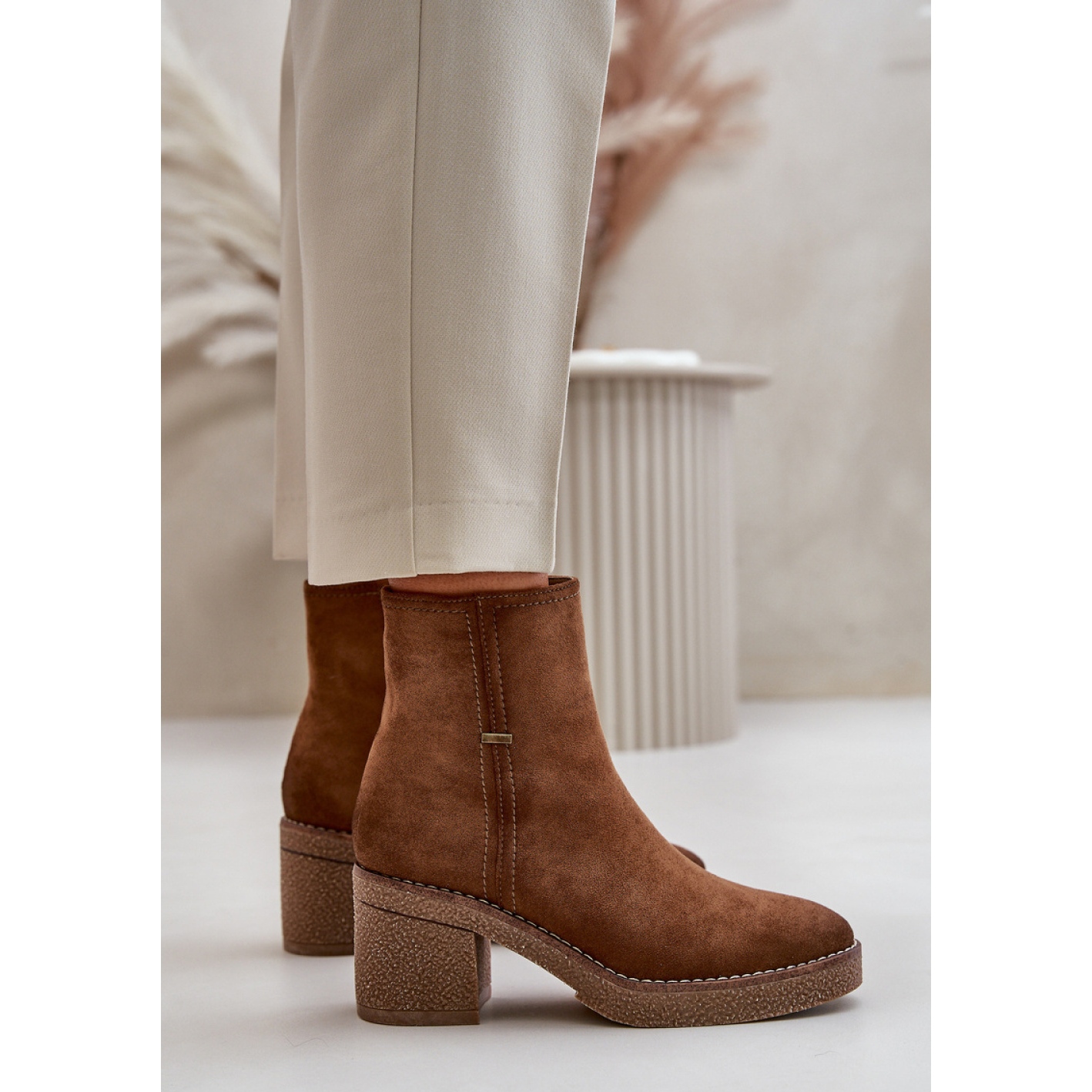 Découvrez le confort et le style avec des bottes féminines brunes sur un talon stable! Fabriqués en daim éco doux, ces bottes sont non seulement belles, mais sont également extrêmement agréables au toucher. Un talon stable sous la forme d'un poteau de haut de 7,5 cm offre un confort toute la journée, ajoutant quelques centimètres à votre taille et mettant l'accent sur le chiffre.