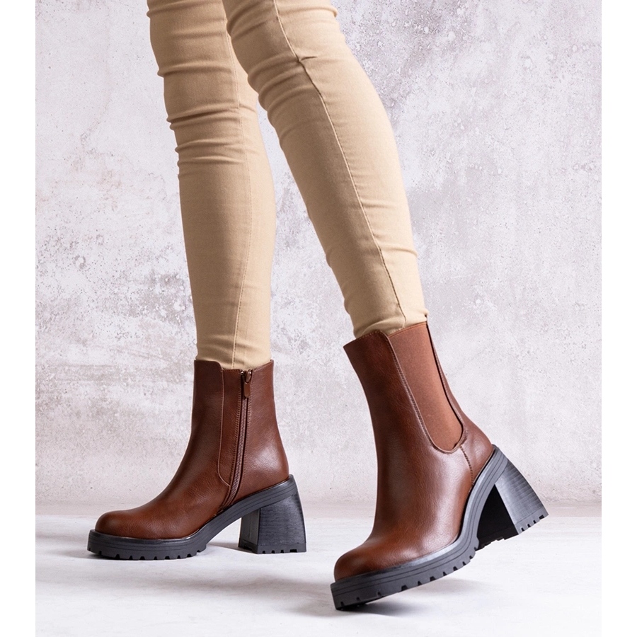 Détails: Bottines marron pour femmes en cuir écologique Ariane brun