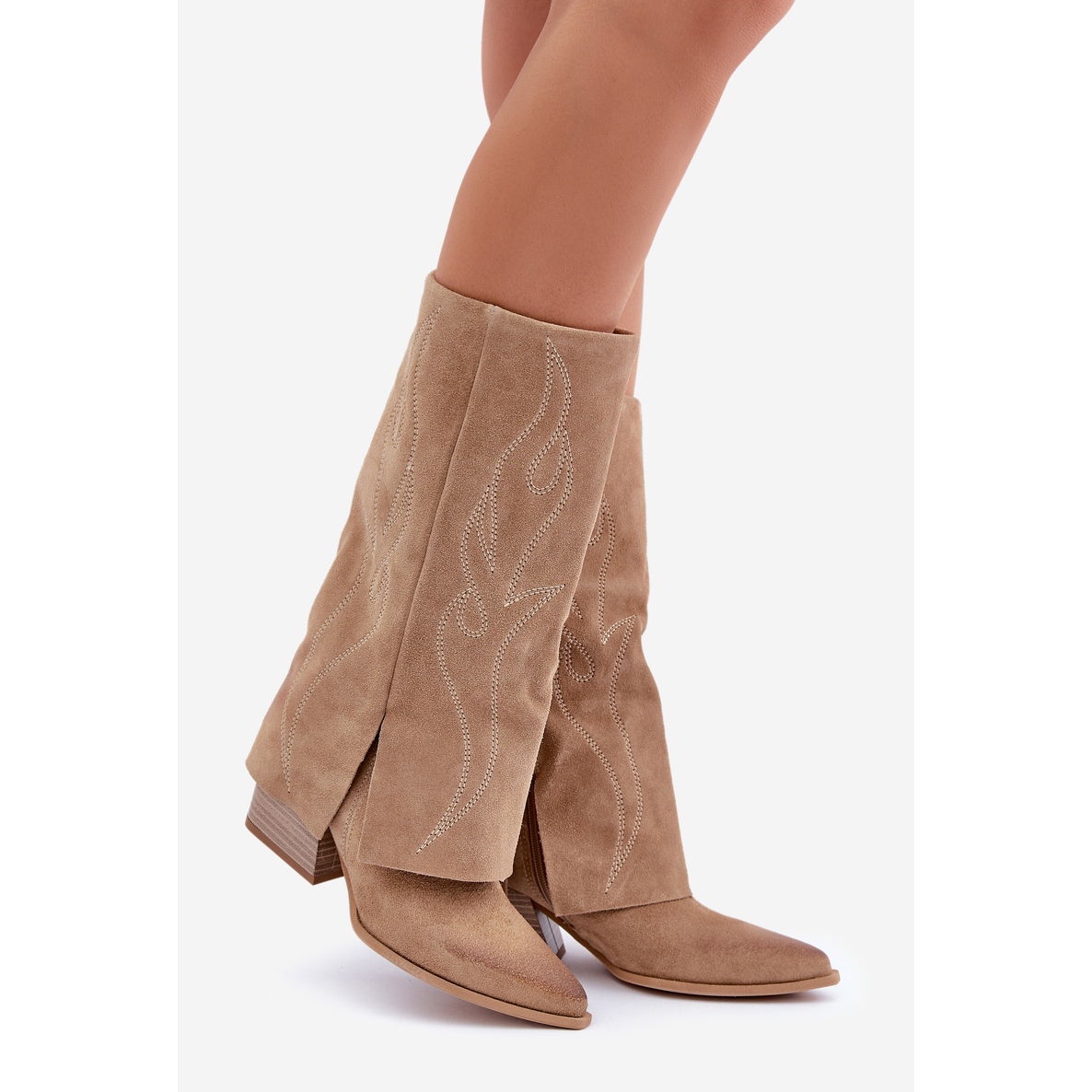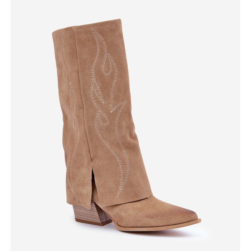 Détails: Bottines Mi-Mollet En Daim À Talon Supérieur Remonté Beige Zazoo 3487
