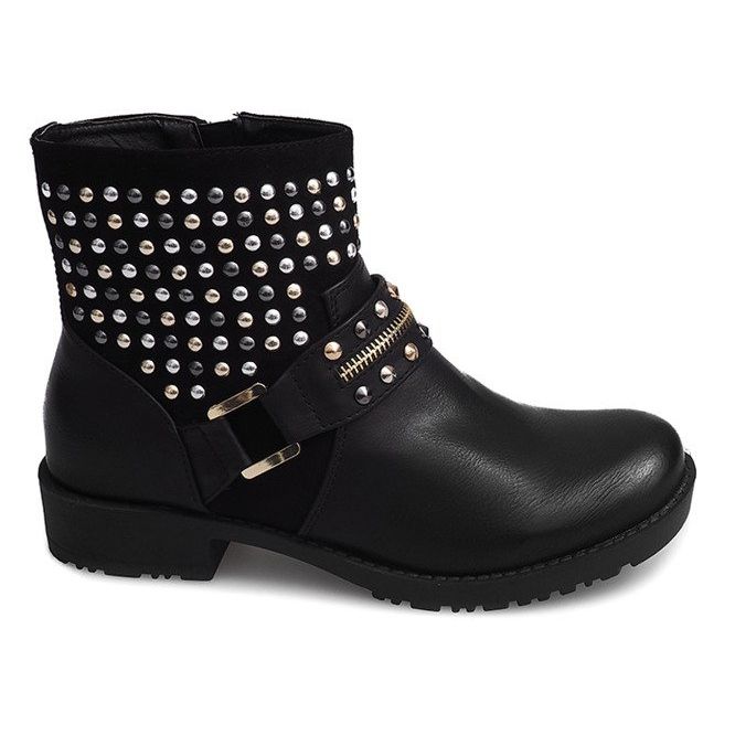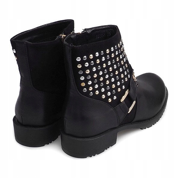 Les bottes motorisées à clous 1636 de couleur noire sont un choix élégant et confortable pour toutes les femmes qui apprécient la mode et le confort. Ces chaussures uniques, argentées ornées de strass et de clous, ajouteront une touche rock à votre garde-robe. Grâce à la fermeture éclair et à la boucle, l'enfilage et le retrait des bottes sont extrêmement faciles.