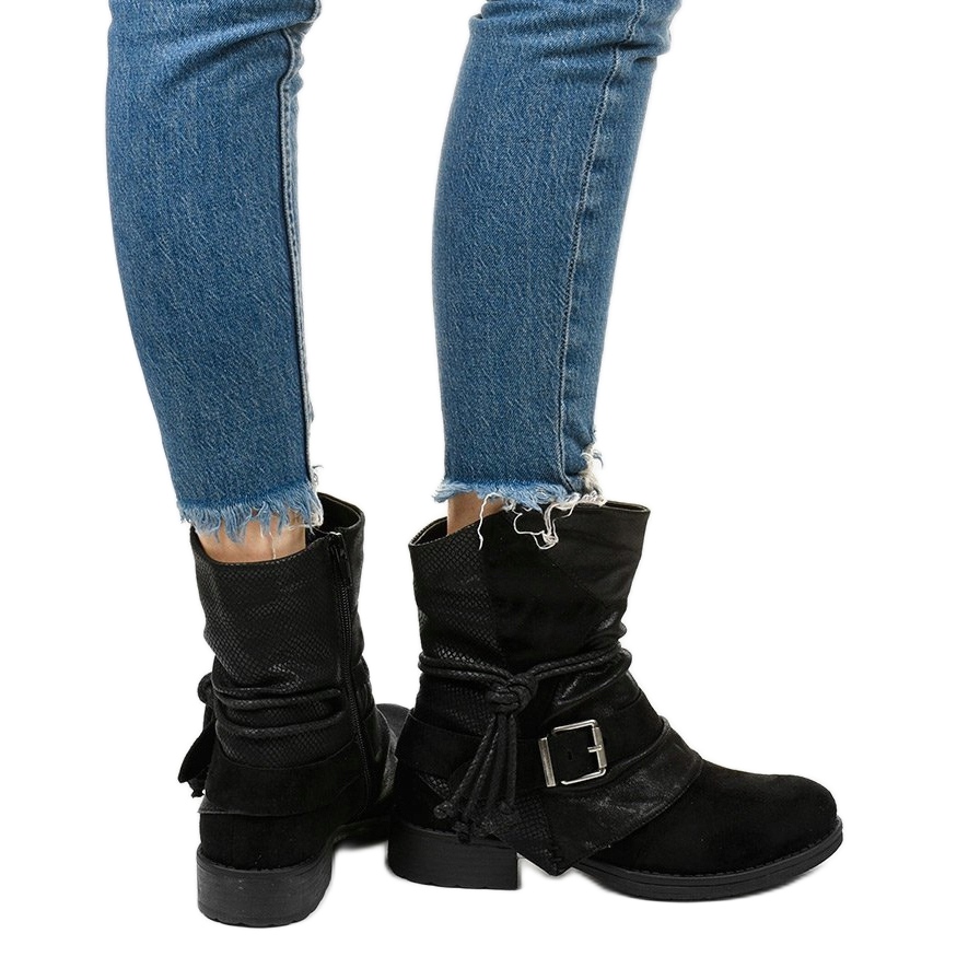 Détails: Bottines noires à boucle et tige décorative Coord le noir