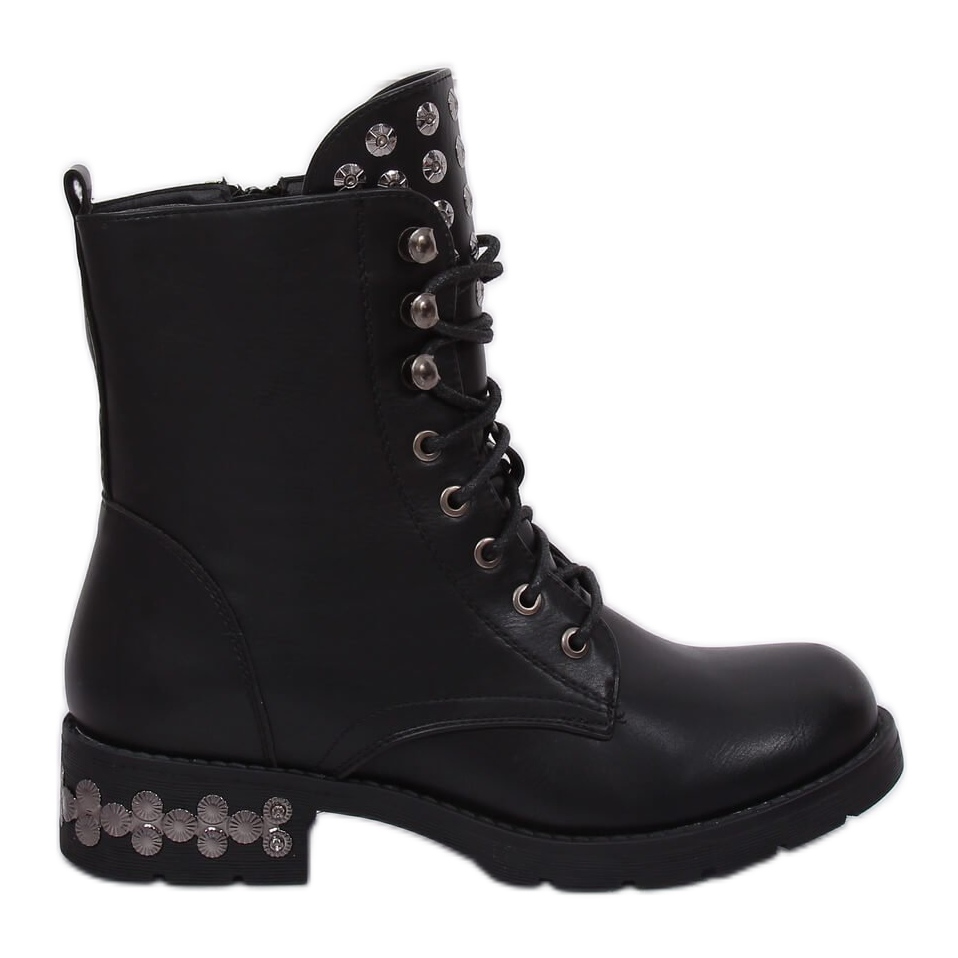 Le caractère unique du modèle est souligné par une semelle distinctive ornée de strass tendance et une languette lacée. En plus du laçage traditionnel, les bottes sont équipées d'une fermeture éclair pratique sur le côté, ce qui facilite leur enfilage et leur retrait. Fabriqués en cuir écologique, ils se caractérisent par une haute qualité et une durabilité élevée. La doublure en mousse assure un confort tout au long de la journée.