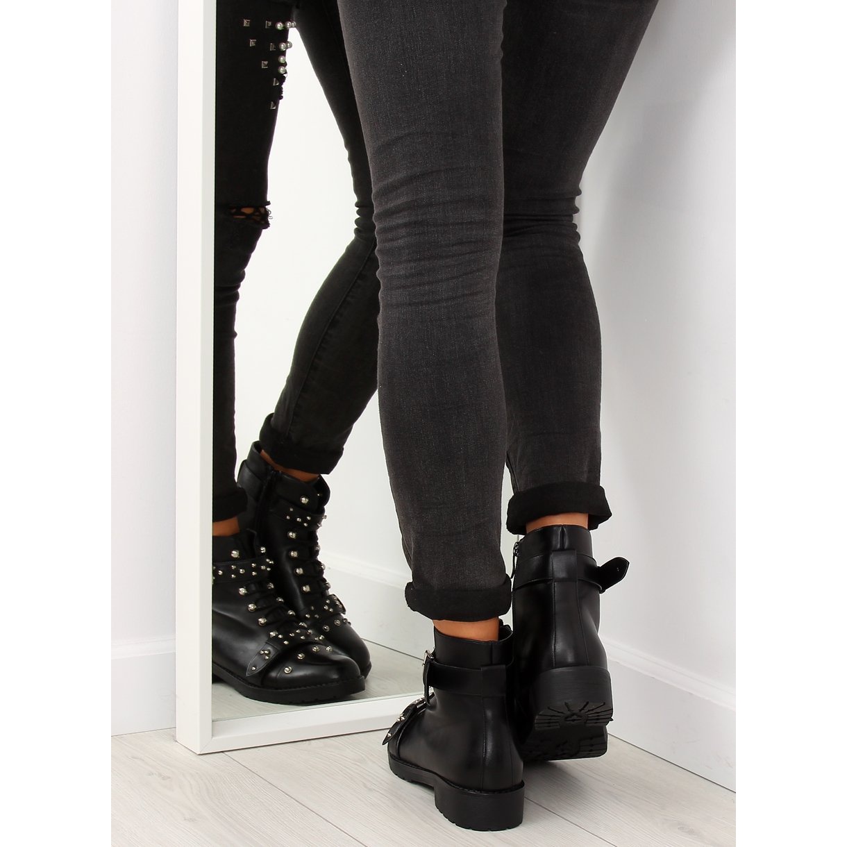 Fabriqués en éco-cuir brillant, ils attirent l'attention avec des clous accrocheurs qui leur donnent un look prédateur caractéristique. Le laçage original, qui rappelle les chaussures de trekking, rend les bottes non seulement élégantes, mais aussi fonctionnelles. Un avantage supplémentaire est la fermeture éclair latérale pratique, qui facilite l'enfilage et le retrait.