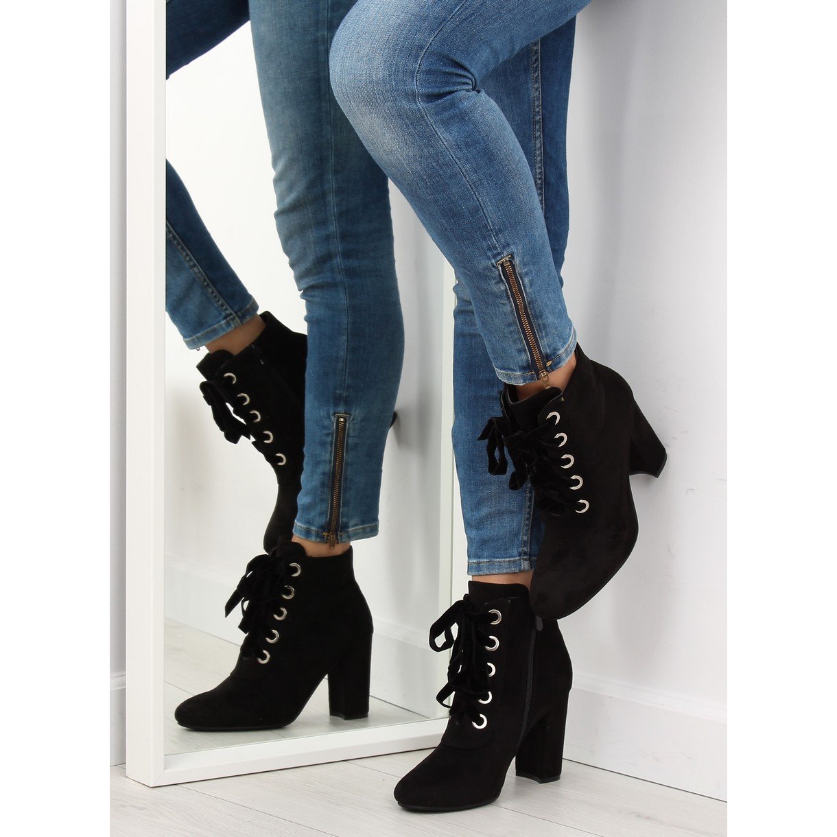 Les bottines à lacets noires ZH781 sont le choix parfait pour les femmes qui apprécient le style et le confort au quotidien. Ces bottes élégantes dotées d'un talon stable de 9 cm allient design moderne et fonctionnalité. Au lieu des lacets traditionnels, un ruban de velours est utilisé, ce qui constitue un accent à la mode, en phase avec les tendances actuelles.