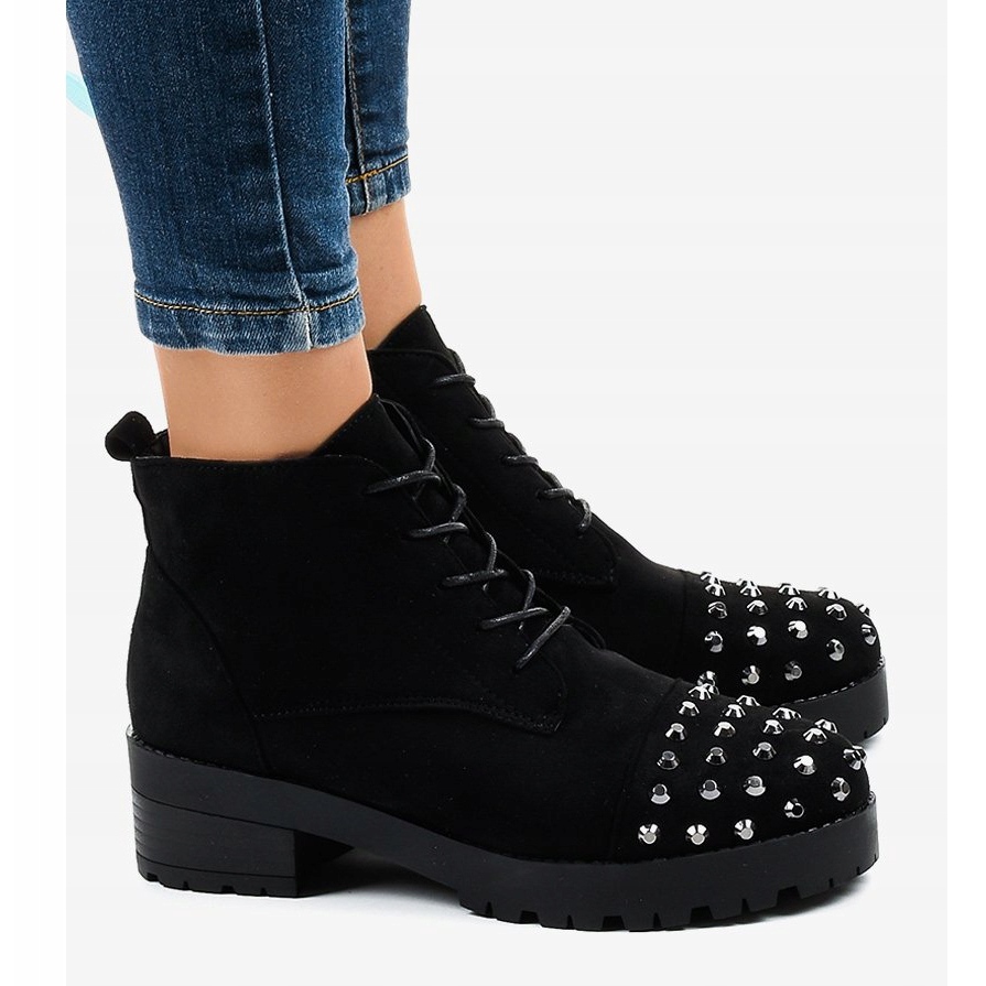 Inna marka Bottines noires à lacets et clous 2017-10 le noir