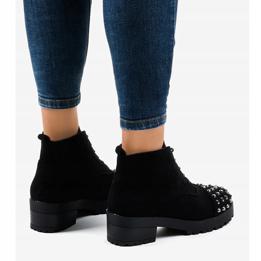 Détails: Bottines noires à lacets et clous 2017-10 le noir