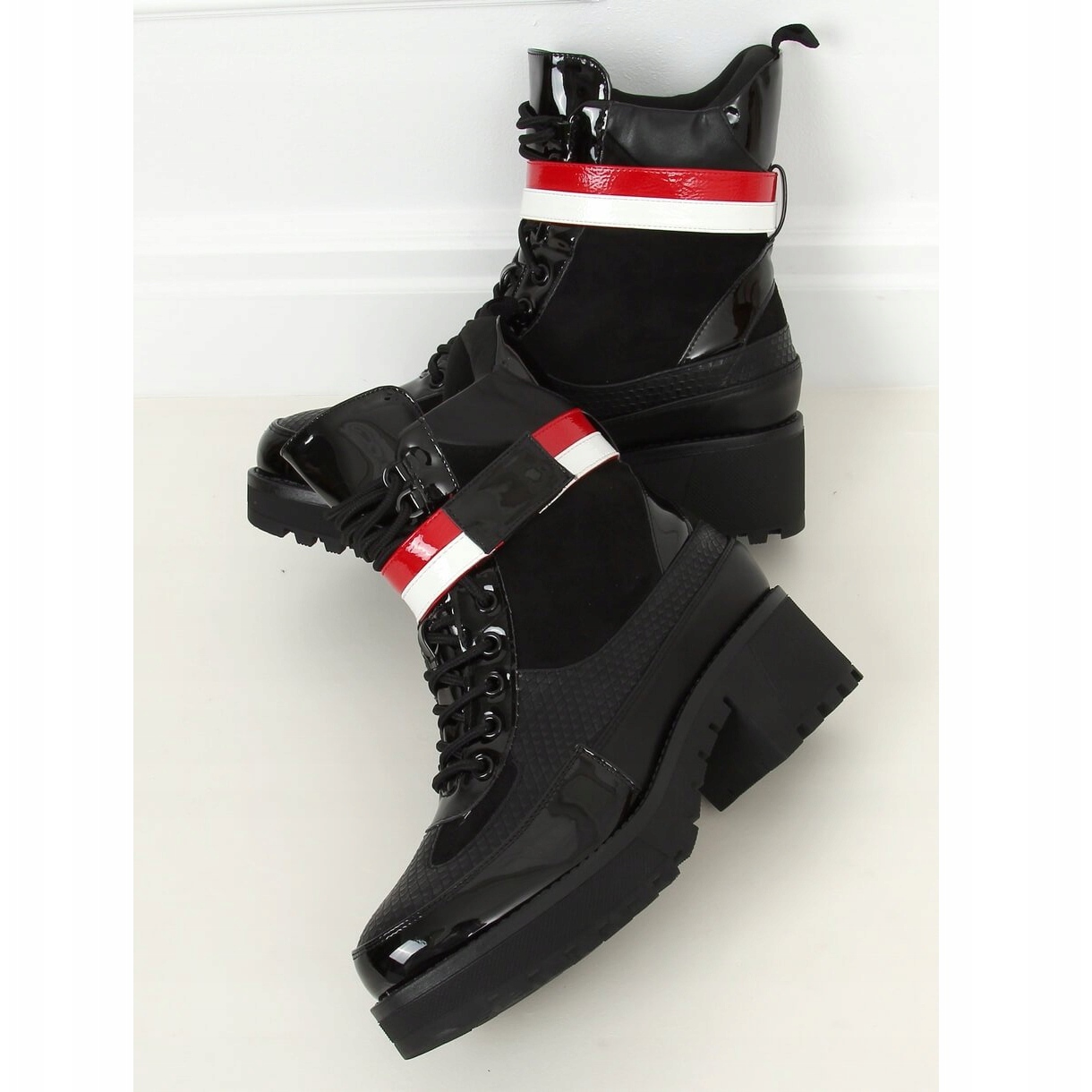Détails: Bottines noires à lacets pour femmes NS086 Noir blanc rouge