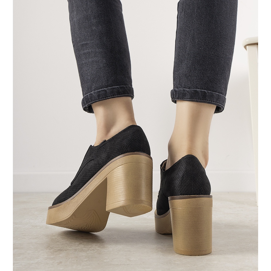 Fabriqués en cuir suédé écologique de haute qualité, ils offrent non seulement un aspect esthétique dans un élégant coloris noir, mais également solidité et durabilité. Le bout rond et la fermeture à lacets sont des détails qui soulignent encore davantage leur caractère universel. La semelle en caoutchouc beige assure adhérence et confort tout au long de la journée.