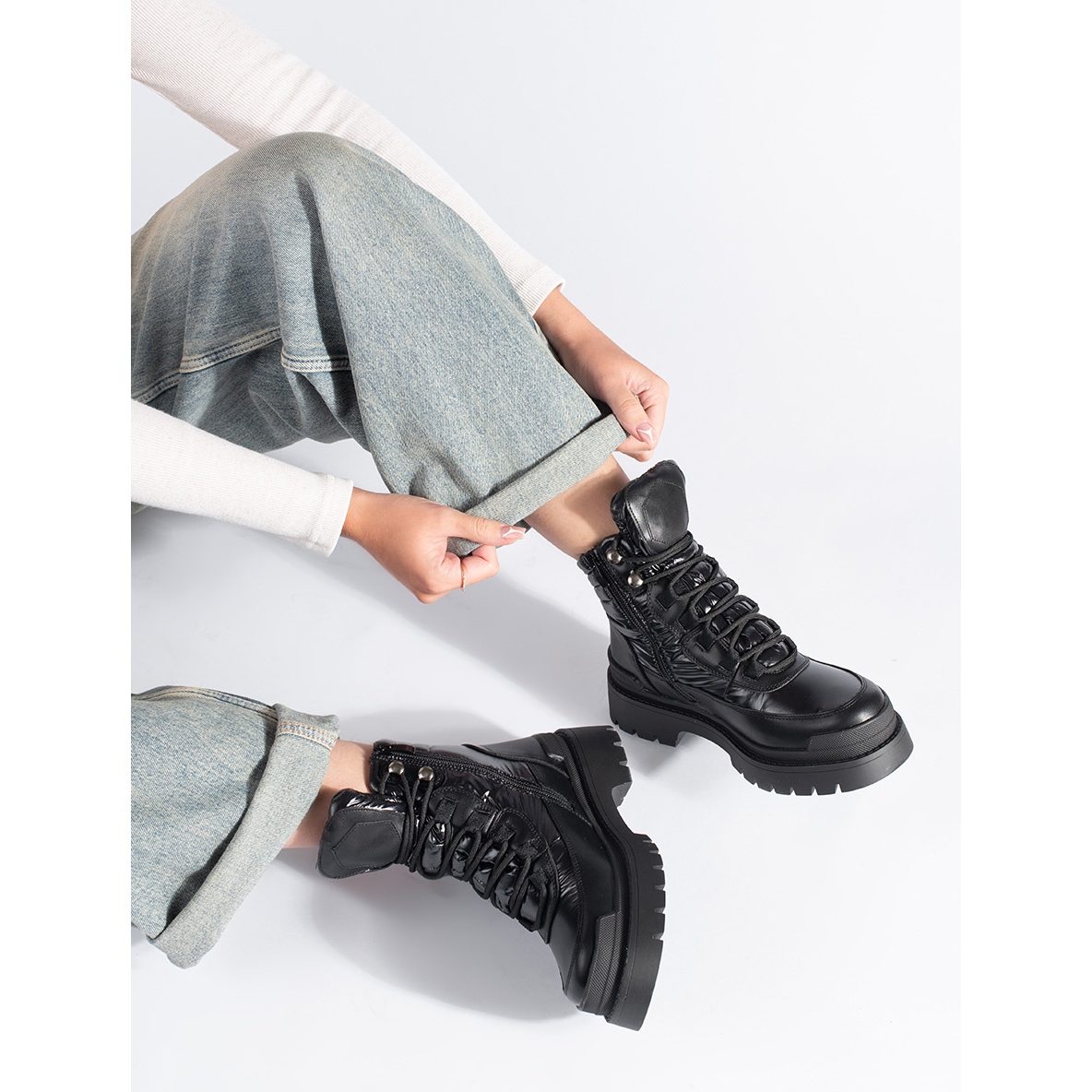 Grâce au talon épais de 4 cm de haut, les bottes gagnent la légèreté et la plate-forme de 5 cm de haut ajoute de l'élégance et allonge optiquement les jambes. Le fermoir à fermeture éclair et les détails lacés permettent un ajustement parfait au pied, ce qui augmente le confort de l'utilisation.