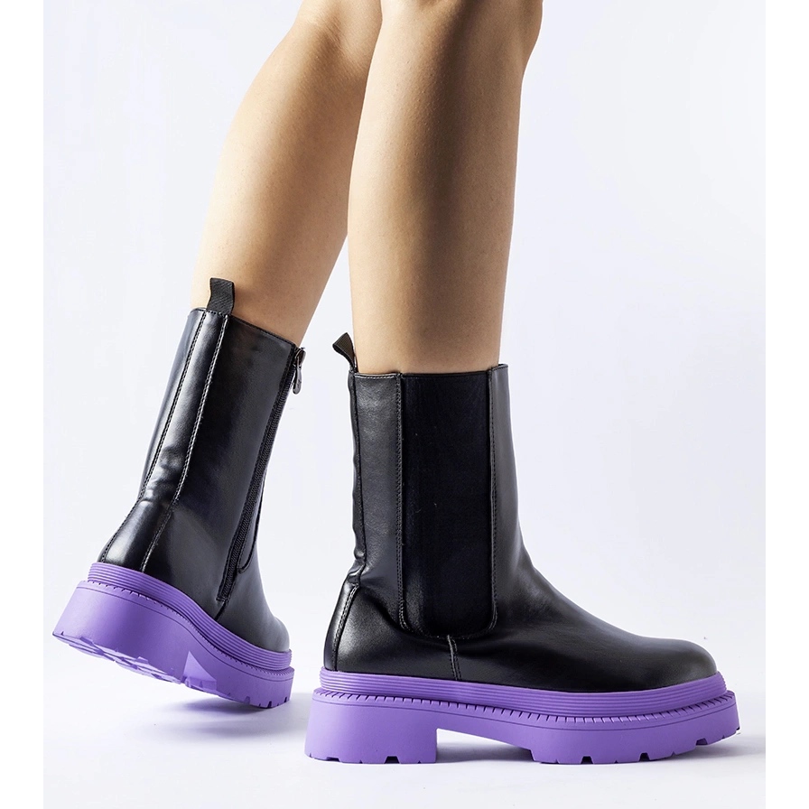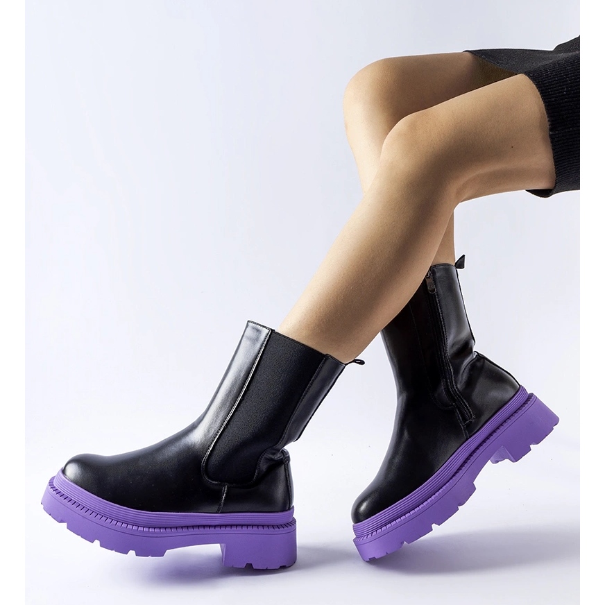 Les bottines noires Garden avec une semelle violette sont des chaussures pour femmes uniques, parfaites pour la saison automne et hiver. Les bottes sont fabriquées en cuir écologique de haute qualité et leur semelle est en caoutchouc. Le produit se caractérise par une fermeture éclair pratique sur le côté, qui facilite l'enfilage et le retrait des chaussures. Les bottes ont un bout rond, ce qui leur confère un caractère moderniste. Les chaussures ont un talon plat, ce qui assure un confort même lorsqu'elles sont portées toute la journée.
