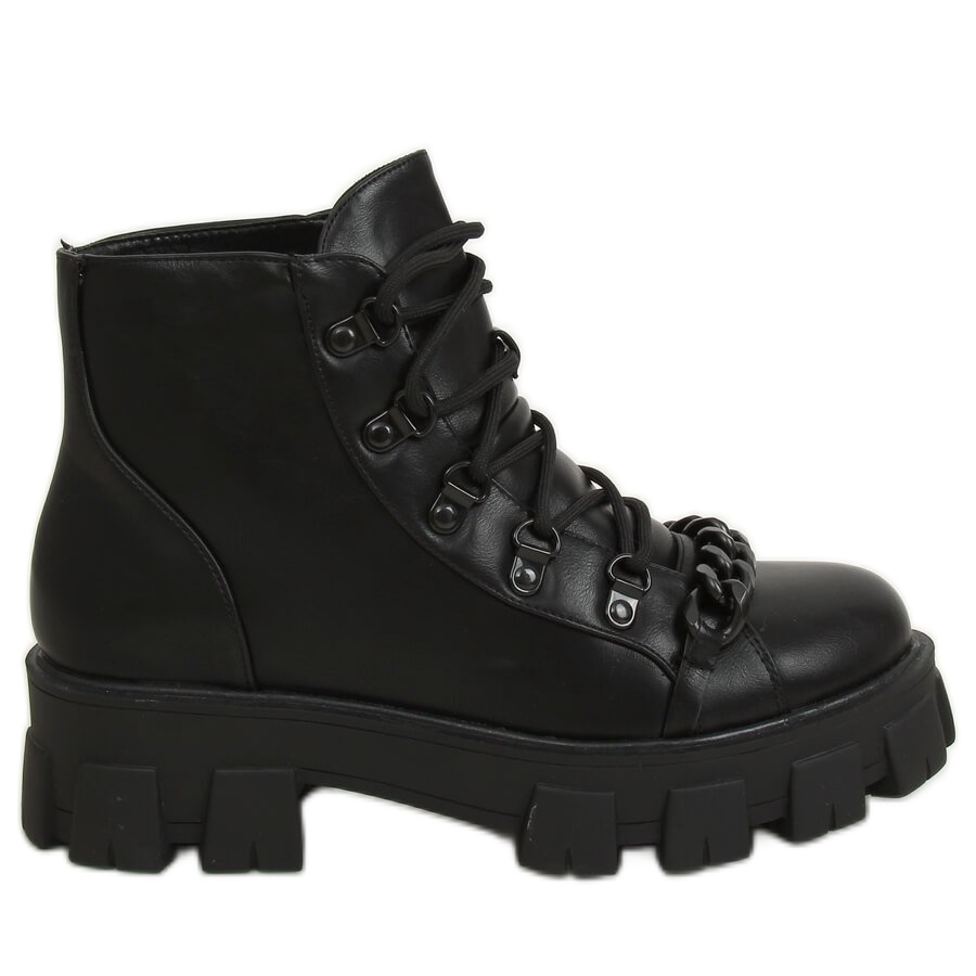 Nous vous présentons les bottes à lacets NC1106 noires à semelle haute, qui allient parfaitement design tendance et confort. Ces bottes élégantes, au noir intemporel, attireront certainement l'attention de nombreuses femmes. Ils doivent leur silhouette caractéristique à une semelle haute de 5 cm de haut et à une chaîne accrocheuse sur le devant, qui ajoute de l'expressivité et un style unique.