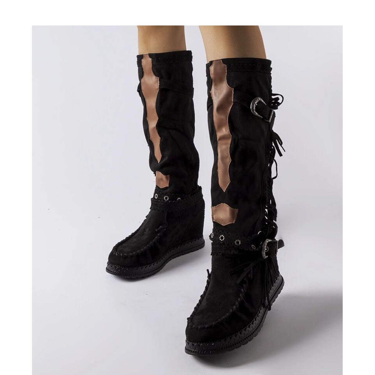 Les bottes compensées recouvertes noires Filiberta sont la solution parfaite pour les journées froides. Leur semelle compensée confortable assure la stabilité pendant la marche, et le talon haut ajoute de l'élégance et du charme féminin. De plus, les bottes sont à enfiler, ce qui les rend plus faciles à enfiler et à enlever. Fabriquées en cuir écologique de haute qualité, ces bottes sont non seulement à la mode, mais aussi fonctionnelles. Parfaits pour l'hiver, ils apportent chaleur et confort même les jours les plus froids. Vous n'avez plus à vous soucier des pieds froids : ces bottes sont un choix parfait pour la saison d'automne et d'hiver. N'attendez plus et complétez dès maintenant votre garde-robe d'hiver avec ces bottes stylées !