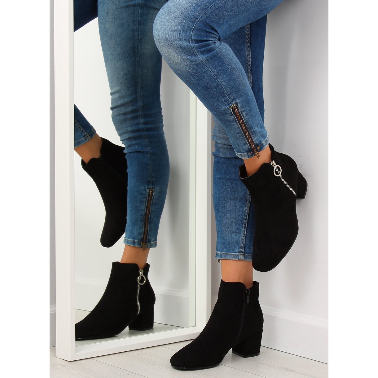 Inna marka Bottines noires à talons bas 9407 black le noir