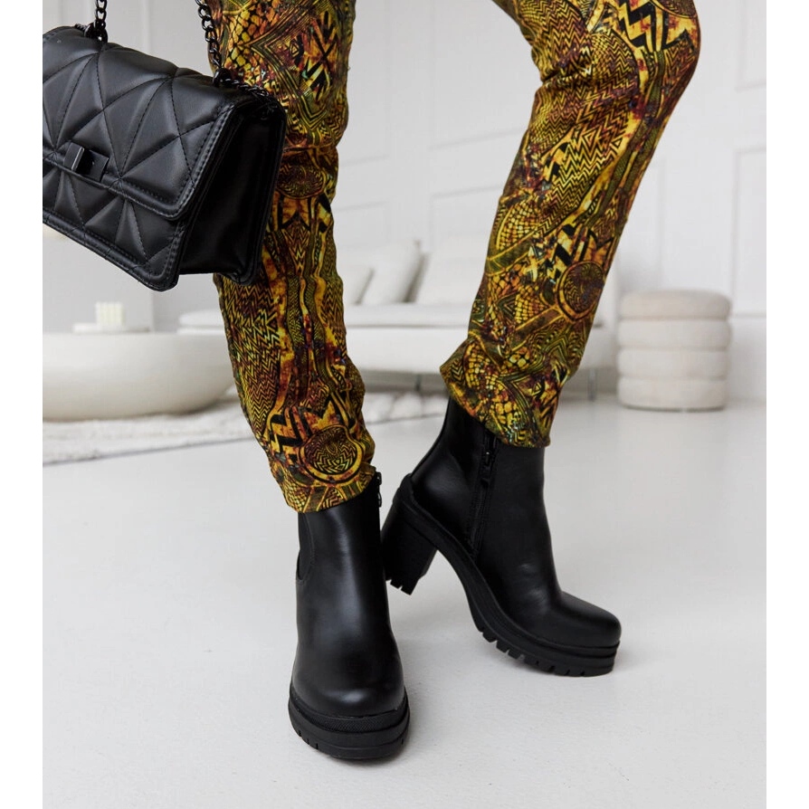 Les bottines noires à talons bas sont des chaussures élégantes et pratiques pour femmes, parfaites pour les mois les plus froids. Leur style minimaliste comprend un bout rond, qui garantit le confort de port et ajoute du charme aux chaussures. La fermeture éclair qui facilite la vie accélère considérablement le processus d'enfilage et de retrait des chaussures. Les bottes se caractérisent par un talon bas de 7,5 cm de haut, qui leur donne un look moderne et permet une utilisation confortable tout au long de la journée. La semelle en caoutchouc garantit une excellente adhérence et sécurité même sur une surface glissante.