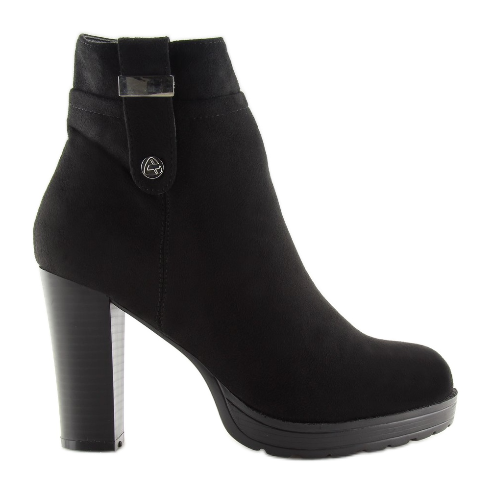 Nous vous présentons d'élégantes bottes noires à talons hauts BK3233 Black, qui deviendront un complément parfait à votre garde-robe ! Fabriquées en daim écologique de haute qualité, ces bottines pour femme allient élégance et confort. Un talon droit d'une hauteur de 9,5 cm allonge à merveille les jambes, ajoutant un charme féminin à la silhouette.