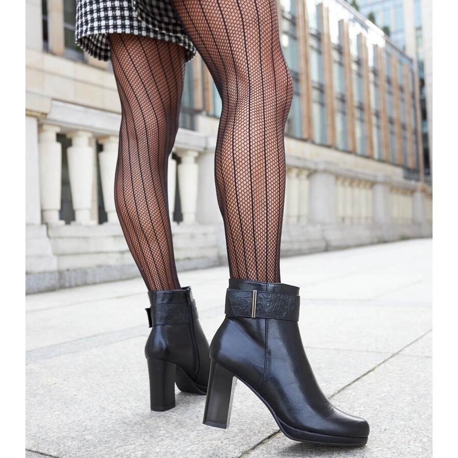 Détails: Bottines noires à talons hauts avec bride décorative Creil le noir