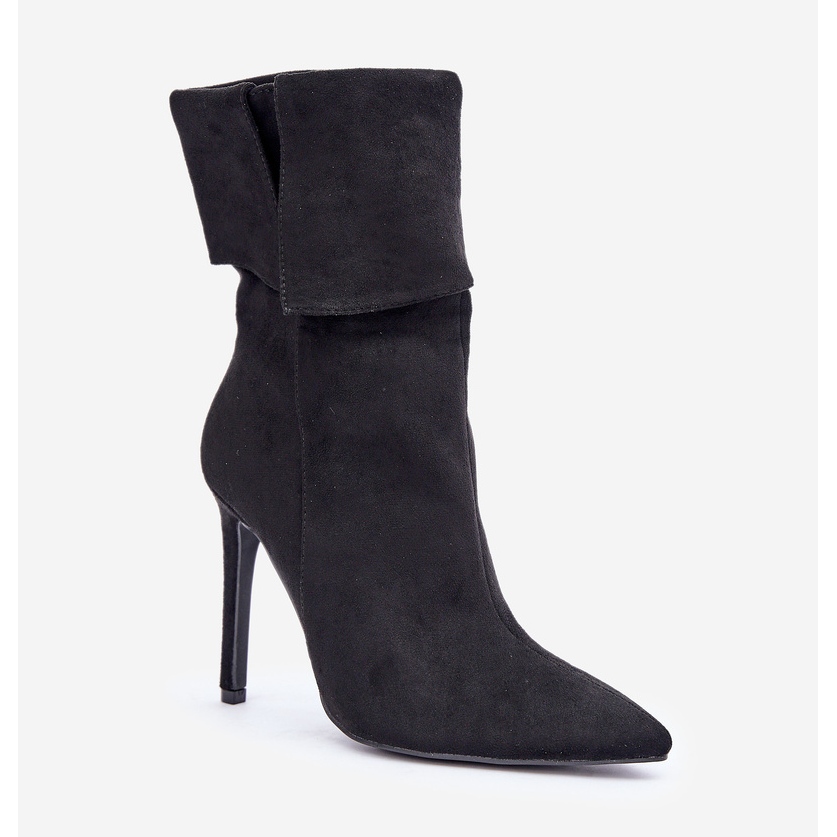 Détails: Bottines noires à talons hauts et tige à revers le noir