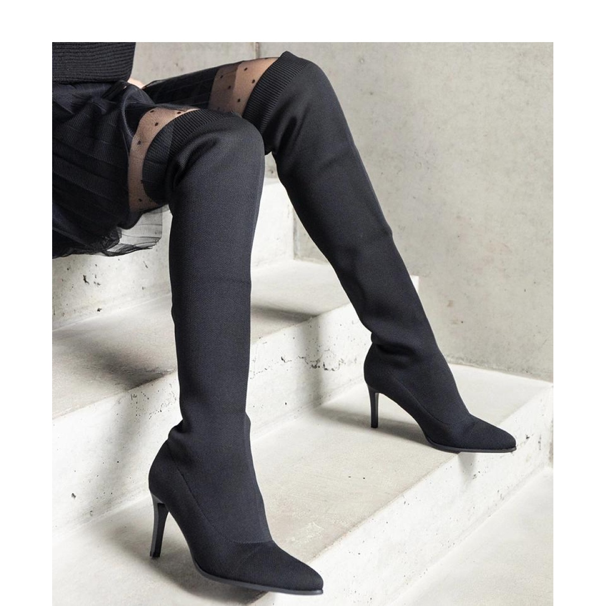 Découvrez l'élégance et le confort avec des bottes noires glissées sur un talon haut avec une tige élastique, créée pour les femmes modernes qui apprécient le style et la fonctionnalité. Ces mousquetaires musculaires, qui atteignent le genou, offrent non seulement un design à la mode, mais aussi un réchauffement chaud, parfait pour les journées d'automne et d'hiver.