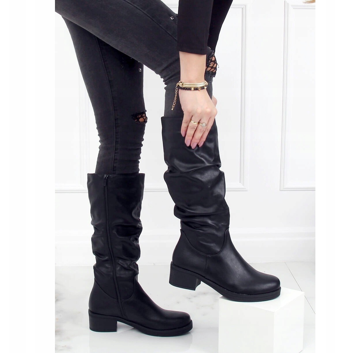 Découvrez l'élégance et le confort en un seul - les bottes noires à talons bas J19-87 Black. Ces chaussures pour femmes à la mode allient style classique et design moderne, ce qui les rend parfaites pour un usage quotidien. Fabriqués en cuir écologique de haute qualité, ils assurent un confort de port et leur surface lisse en noir classique convient à de nombreux styles.