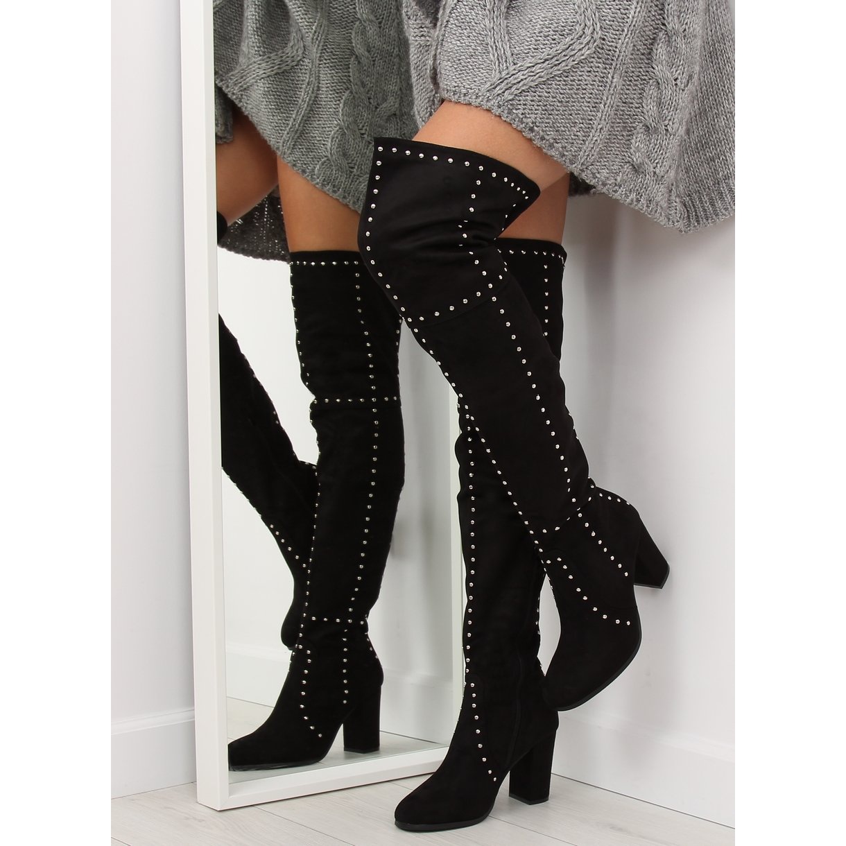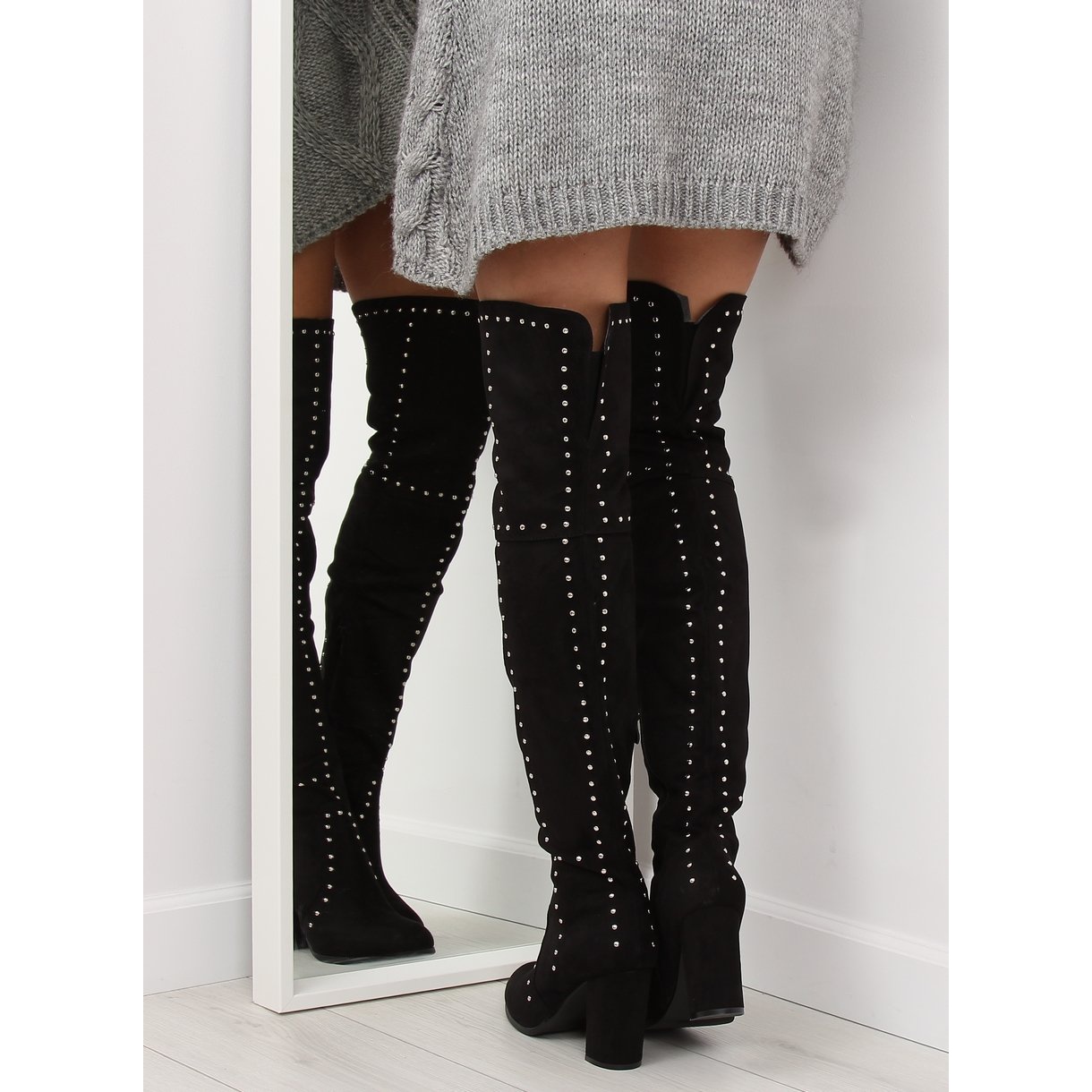 Les mousquetaires ont un talon stable de 9 cm en forme de poteau, qui vous offrira un confort tout au long de la journée. Il y a une fermeture éclair pratique sur le côté, qui permet d'enfiler et de retirer les chaussures rapidement et facilement. Fabriquées à partir d'éco-daim de haute qualité, ces bottes offrent à la fois style et respect de l'environnement.