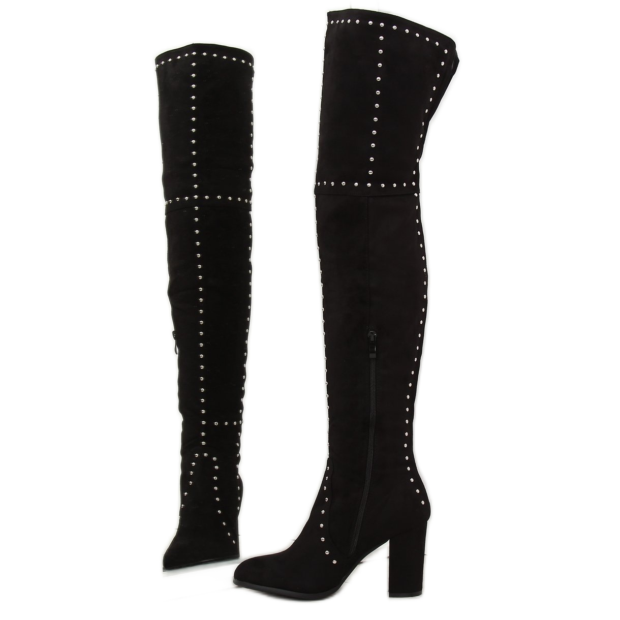 Découvrez un style et un confort uniques avec nos talons mousquetaires noirs NC221 Black. Ces bottes élégantes pour femmes combinent un design classique avec des détails modernes, ce qui en fait le complément parfait à toute garde-robe. Leur design simple et lisse les rend intemporels et toujours actuels, tandis que les clous accrocheurs leur confèrent un caractère original, attirant l'attention et soulignant votre style individuel.