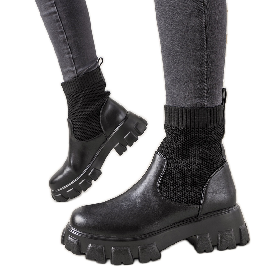 Détails: Bottines noires à tige chaussette de chez Slainie