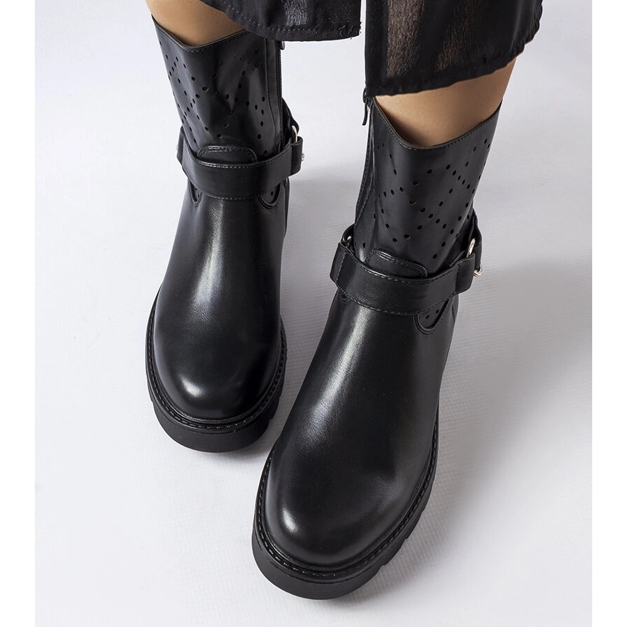 Les bottines noires ajourées avec chaîne Procopio complètent avec élégance le dressing féminin. Ils sont fabriqués en cuir écologique, ce qui garantit leur durabilité et leur facilité de nettoyage. Les bottines sont fabriquées dans un style moderne et tendance - elles s'adaptent à de nombreux styles et donneront à votre tenue un style unique.
