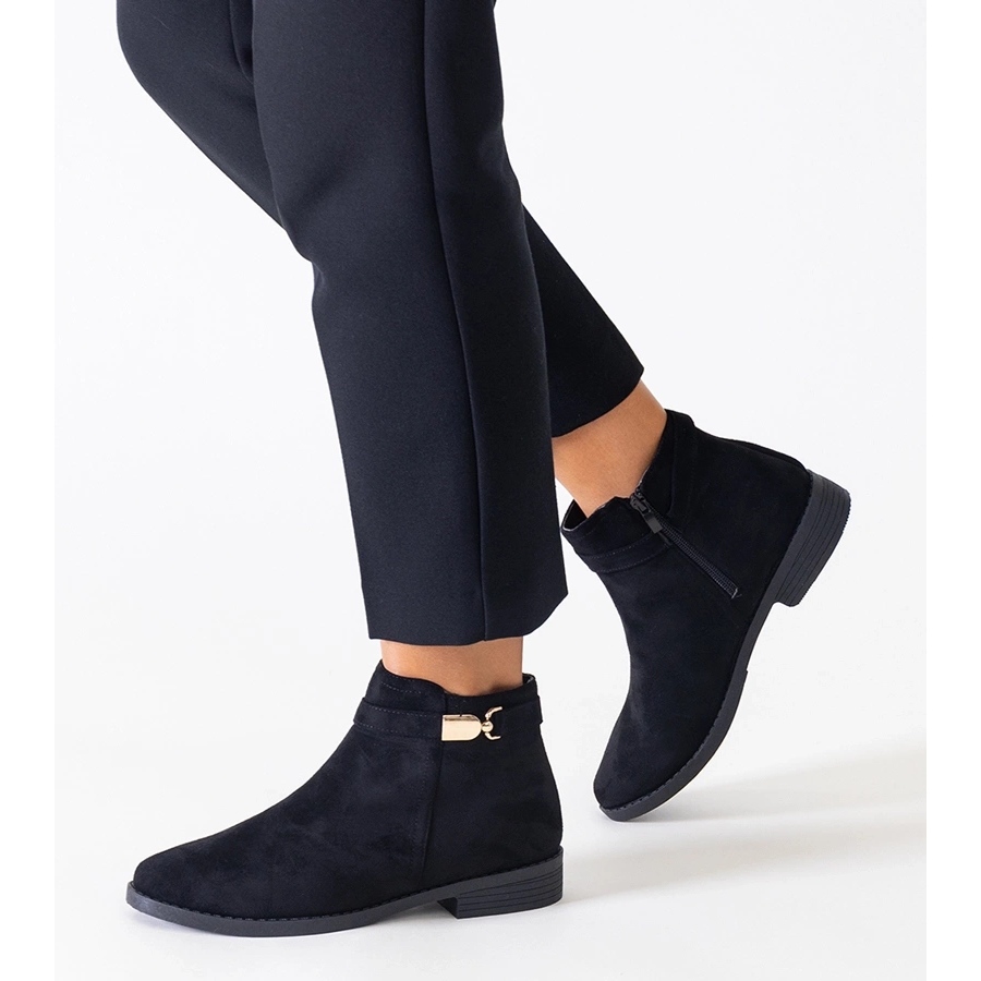 Les bottes noires avec des inserts Golden Eco-Zamsz Casetra sont un choix parfait pour les femmes qui veulent combiner la mode et le confort. Ces chaussures élégantes sont caractérisées par un nez d'amande et une hauteur de cheville haute, ce qui les rend parfaitement adhérés au pied, tout en offrant de la chaleur pendant les jours plus frais. Fabriqués en cuir en daim écologique de haute qualité, ils ont l'air très élégants et les détails dorés leur donnent un caractère unique.
