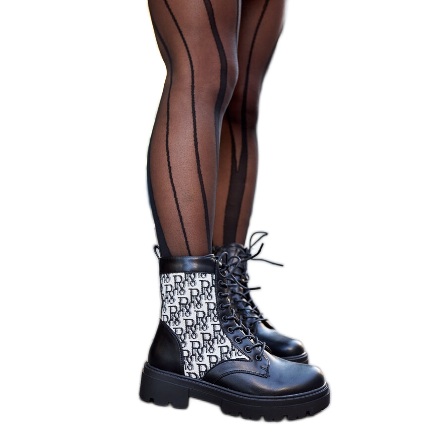 Détails: Bottines noires avec inscriptions décoratives Cisneros