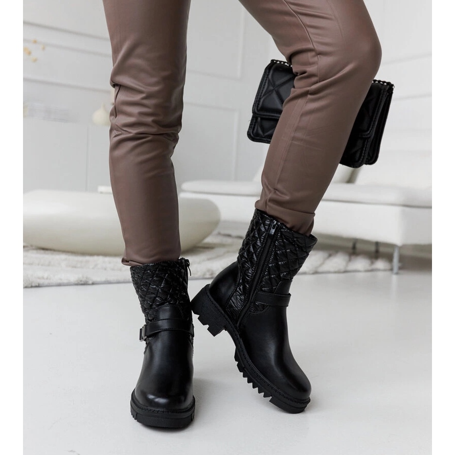 Élégant et pratique à la fois - ces bottes noires avec courtepointe décorative sont la proposition parfaite pour la saison de l'automne. Fabriqué en cuir écologique avec une finition mate lisse, ils ont l'air classiques et universels, et la courtepointe subtile leur donne un personnage féminin. Le modèle WD-9089 atteint la cheville (hauteur du haut: 22,5 cm), grâce à laquelle il protège contre le vent et le froid, et l'isolation offre un confort thermique supplémentaire.