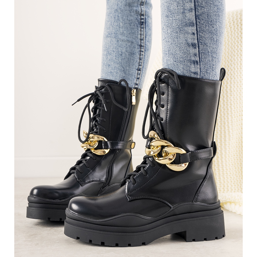Découvrez un style et un confort extraordinaires avec les bottes noires Rock It, qui complètent parfaitement toute tenue à la mode. Ces chaussures uniques sont fabriquées en cuir écologique de haute qualité, ce qui les rend à la fois durables et respectueuses de l'environnement. Un élément caractéristique des bottes est une chaîne dorée sur la bride, qui leur donne un caractère rock et les distingue des autres modèles.