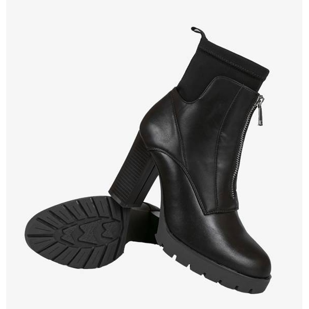 Les bottes ont un talon stable de 9,5 cm, ce qui augmente le confort lors des activités quotidiennes. Leur hauteur cheville ajoute de l'élégance et met en valeur la silhouette féminine. Grâce au bout large, les chaussures sont également très confortables et la semelle synthétique offre une bonne adhérence.