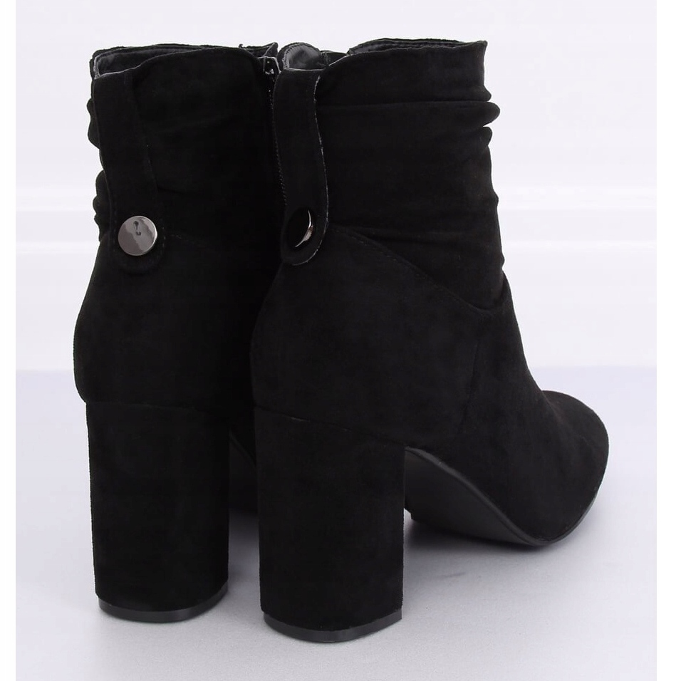 Les bottines noires classiques à talons hauts 9018-7 Black sont le choix parfait pour les femmes qui apprécient l'élégance combinée au confort. Ces bottines à volants tendance se distinguent non seulement par leur aspect élégant, mais aussi par leurs solutions pratiques. Un talon bloc stable de 8,5 cm assure un excellent équilibre, ce qui les rend parfaits pour de longues heures de port.
