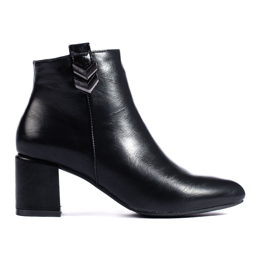 Élégant, confortable et universel - ces bottes Daszyński noires sont le choix parfait chaque jour. Fabriqué en cuir écologique de haute qualité (imitation de la peau 100%) avec une doublure textile et un réchauffement, assurez le confort et la chaleur les jours plus frais. Un pilier stable avec une hauteur de 6 cm ajoute quelques centimètres de haut, sans abandonner la commodité pendant le port plus long. La fixation sur le curseur facilite l'insertion, et un talon raidi et raidi de construction améliore la stabilité du pied.
