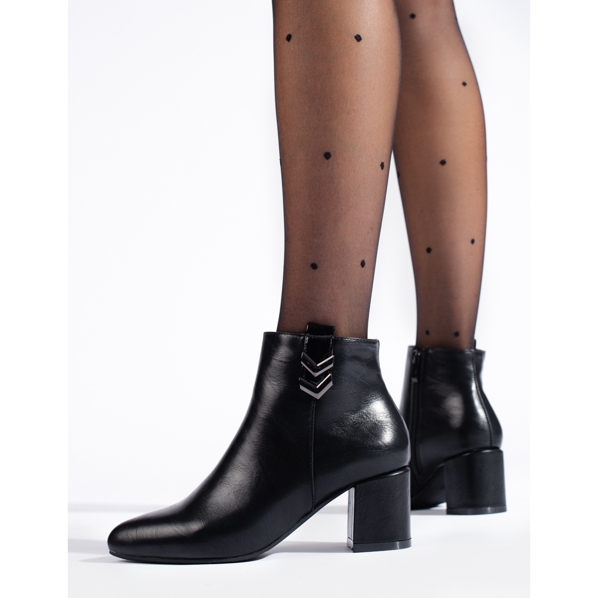 Les bottines Daszyński pour femme sont des chaussures noires élégantes et classiques à talons hauts, parfaites pour un style décontracté au quotidien. Fabriquées à partir de matériaux de la plus haute qualité - une semelle lisse en plastique et une partie supérieure en simili cuir, elles sont non seulement à la mode, mais aussi confortables.