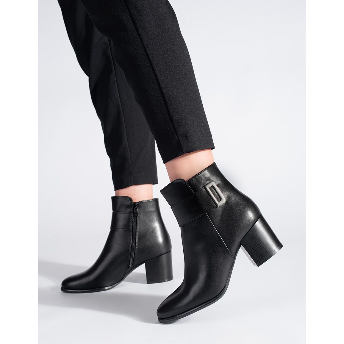 La hauteur du talon de 6,5 cm sous la forme d'un poteau signifie que les bottes sont non seulement stables, mais allongent également optiquement les jambes et modélisent la figure. La fermeture éclair sur le côté facilite la mise en place et le décollage, et la couleur noire universelle les fait correspondre à de nombreuses tenues différentes.