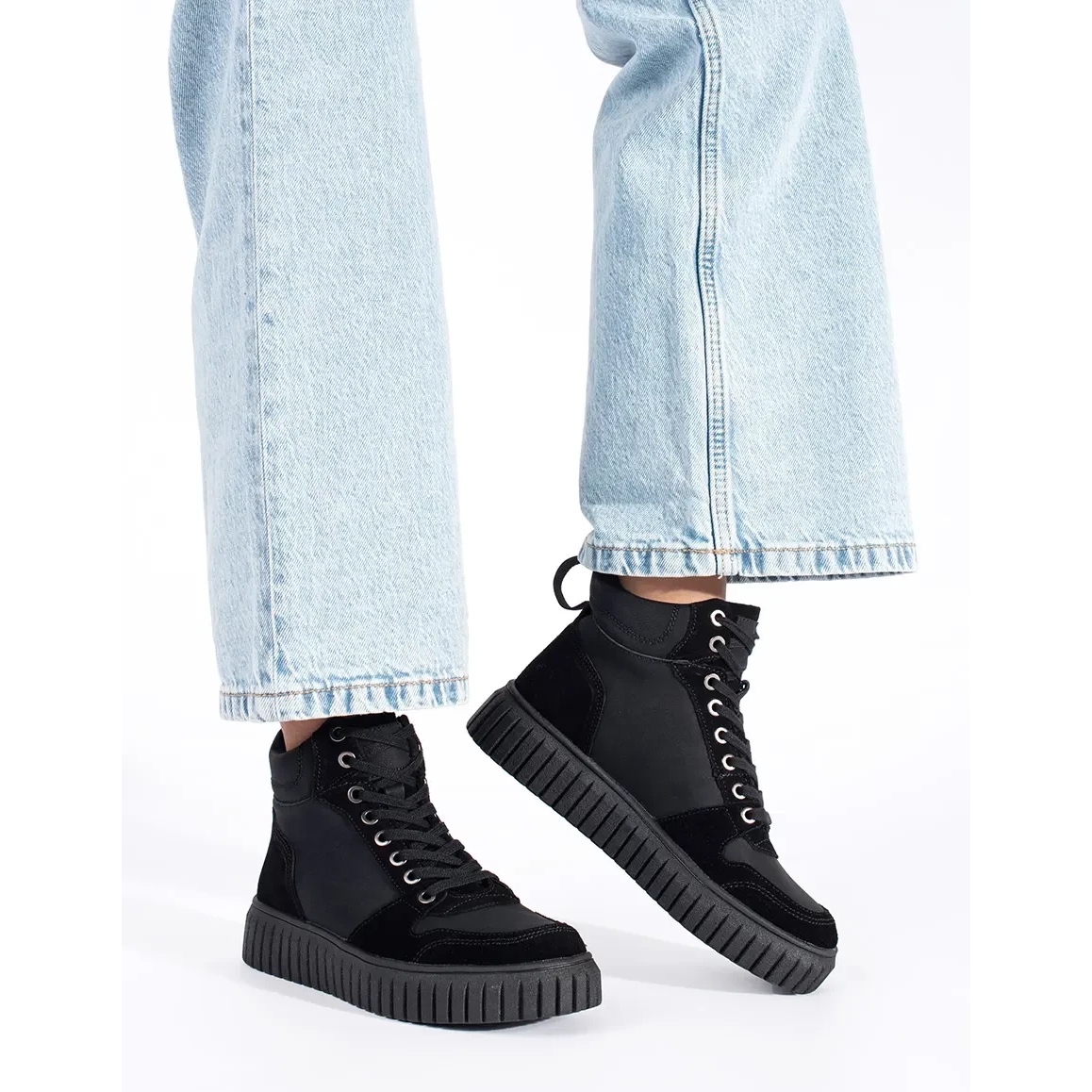 N'attendez pas! Choisissez des bottes noires sur une semelle pressée épaisse qui combine le style et le confort. Un excellent choix pour l'automne et l'hiver, parfait pour les promenades quotidiennes et les réunions avec des amis. Découvrez un style unique qui ajoutera du caractère à toute stylisation!