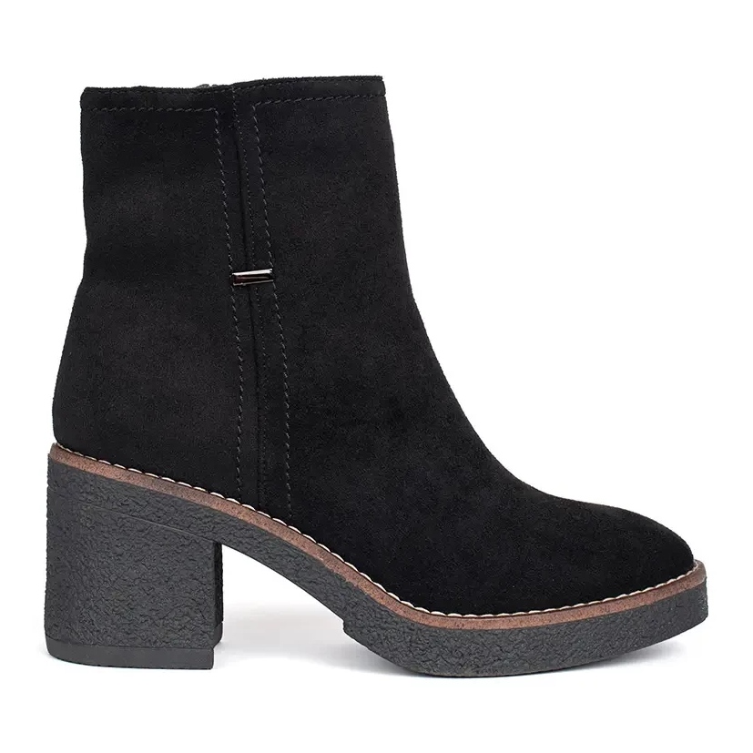 Grâce à la fixation et au réchauffement construits, ces bottes sont parfaites pour les jours plus frais, offrant de la chaleur et du confort. Le nez rond et la hauteur de la tige atteignant la cheville leur donnent une classe et une polyvalence. Le talon de 7 cm de haut utilisé sous la forme d'un poteau assure la stabilité et le confort lors de la marche, ce qui en fait un choix idéal au quotidien.