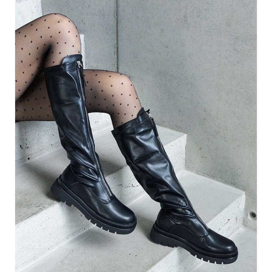Ces bottes noires ne sont pas seulement un choix à la mode, mais aussi un élément pratique de la garde-robe de chaque femme. L'emballage original sous la forme d'une boîte élégante en fait une excellente idée cadeau. Que vous les combiniez avec un jean, une robe ou une jupe, ils ajouteront certainement le caractère de toute stylisation.