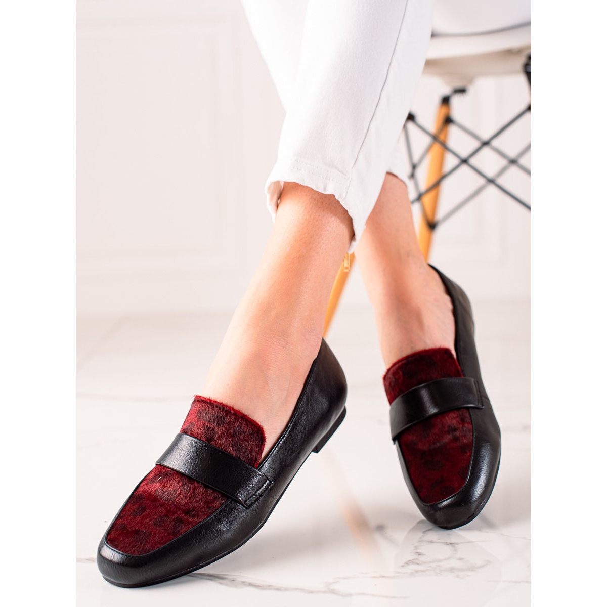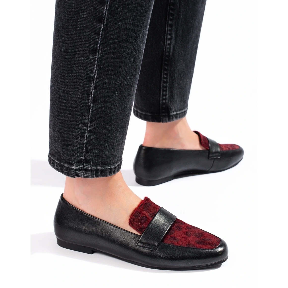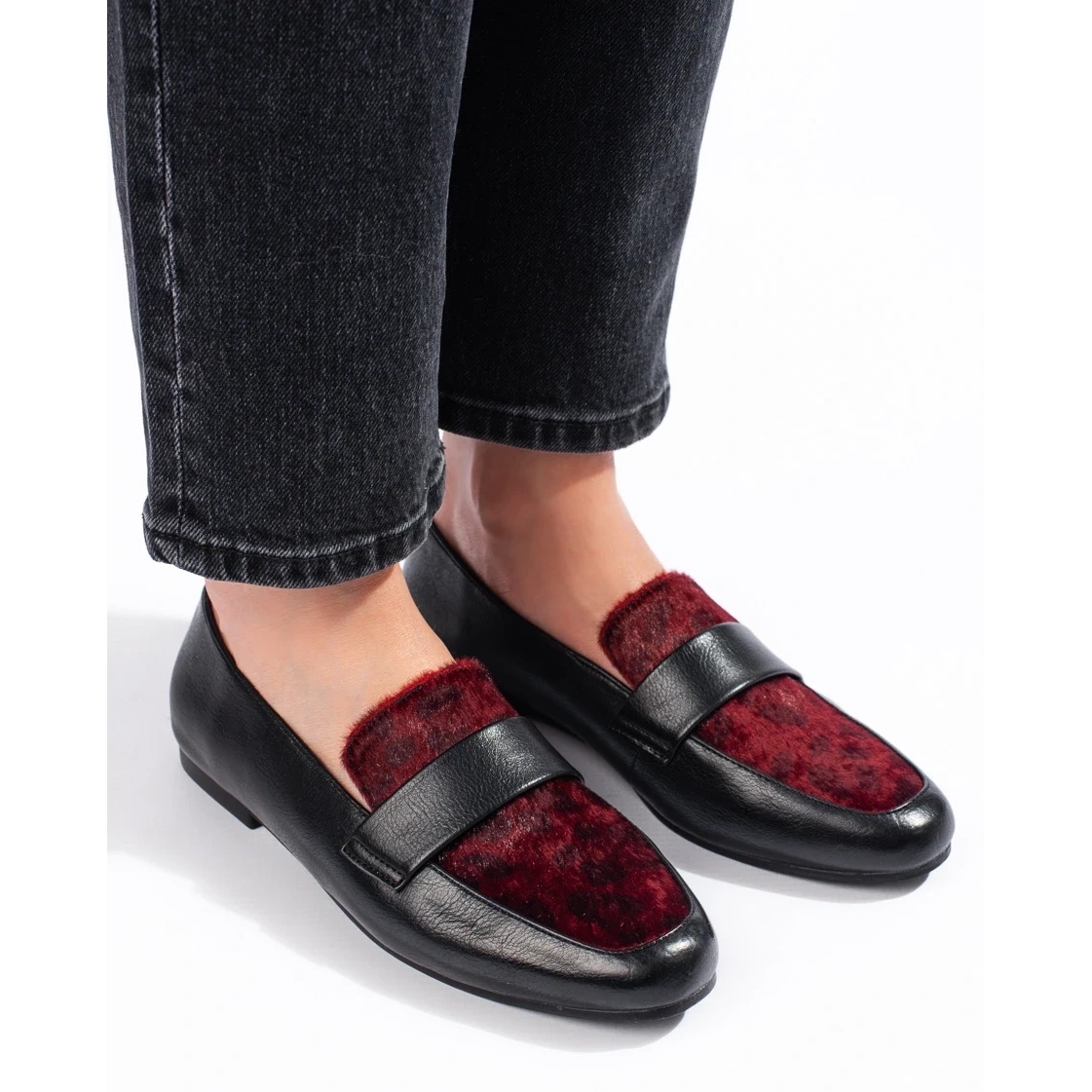 Découvrez l'élégance et le confort dans des chaussures noires et bordeaux avec fourrure. Ces mocassins noirs/vin uniques pour femmes allient parfaitement mode et fonctionnalité. Fabriquées en cuir écologique de haute qualité, elles assurent durabilité et confort d'utilisation, et la semelle intérieure en cuir naturel les rend extrêmement agréables pour les pieds.