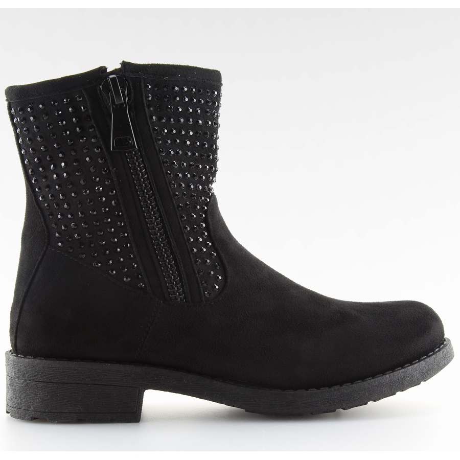 Des bottines pour femme classiques et efficaces qui allient confort et brillance subtile. Fabriqués en daim écologique charnu, ornés de minuscules strass noirs, ils ont un look soigné et mince sur la jambe - parfaits pour les journées les plus froides de la saison.